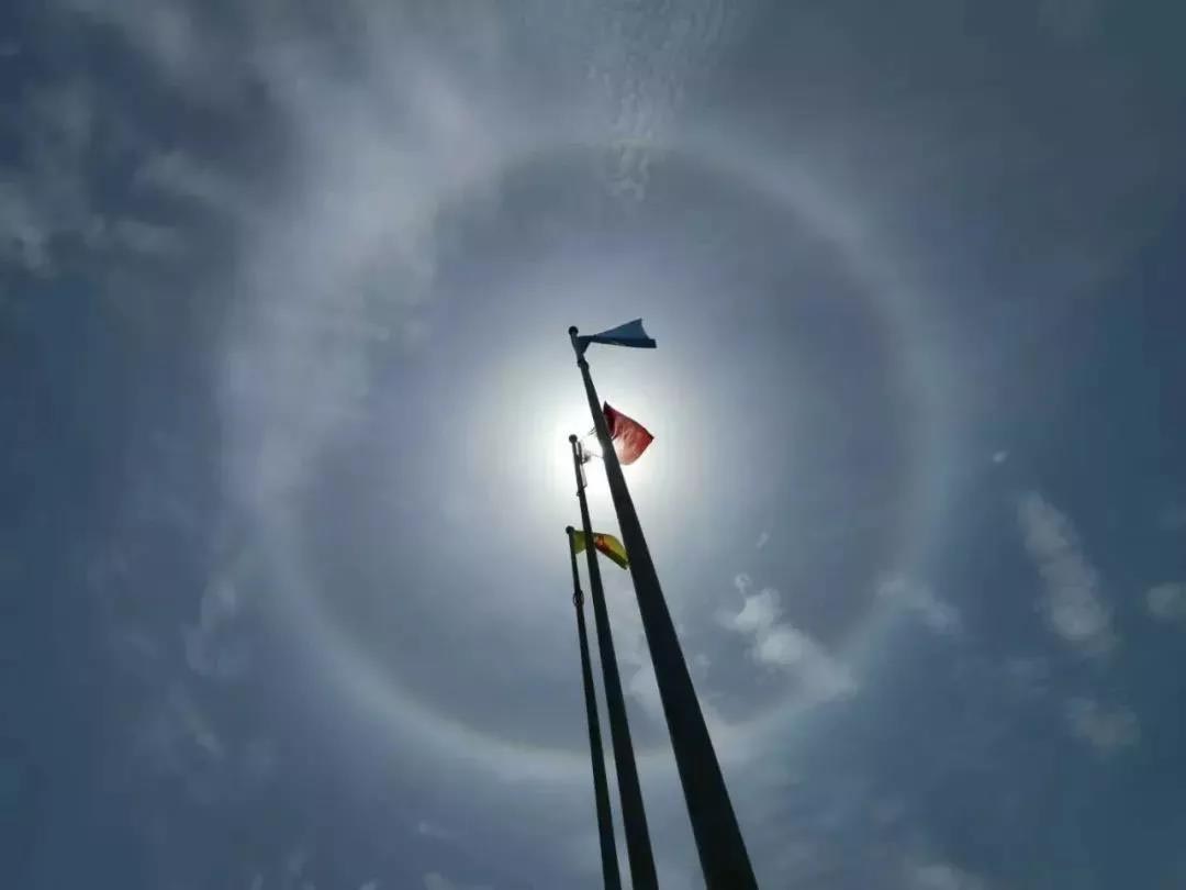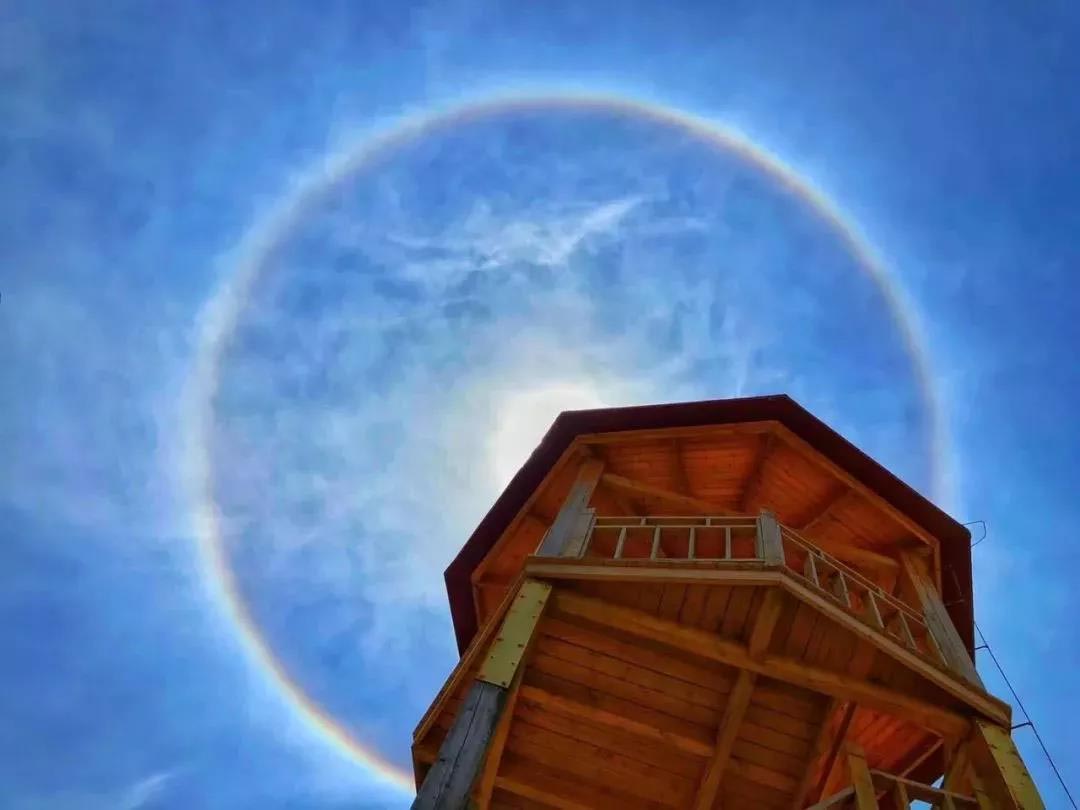 小贴士:日晕也叫圆虹 ,一种大气光学现象,是日光通过卷层云时,受到冰晶的折射或反射而形成的。